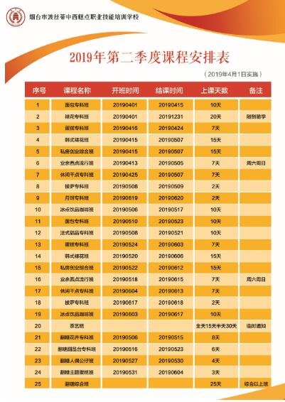 煙臺波絲蒂糕點培訓學校創(chuàng)立于2004年,是煙威地區(qū)首家中西糕點專業(yè)培訓機構,是煙臺市人力資源和社會保障局指定的正規(guī)技能培訓基地,也是培養(yǎng)中、西式面點師,中、西式烹調(diào)師,茶藝師、調(diào)酒師、咖啡師、公共營養(yǎng)師的專業(yè)搖籃。煙臺波絲蒂糕點培訓學校學員可以參加全國統(tǒng)一的職業(yè)資格考試,獲得全國人社部職業(yè)資格證書。零基礎,包教包會!