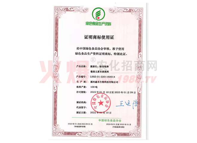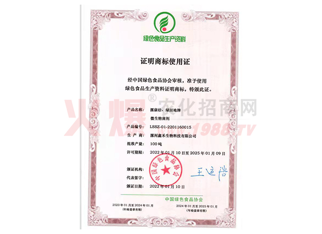 漯河鑫禾生物科技有限公司是農(nóng)業(yè)科技的殿堂,她沉積了待以開(kāi)發(fā)的物價(jià)科技財(cái)富,擁有大批的科技人才,公司目前擁有國(guó)家肥料登記證十一種,注冊(cè)商標(biāo)五個(gè),發(fā)明專(zhuān)利一項(xiàng)。