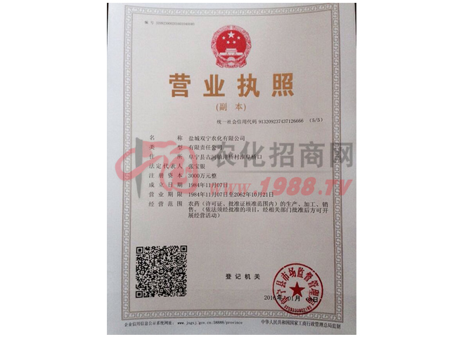 鹽城雙寧農(nóng)化有限公司,其前身是江蘇省阜寧縣農(nóng)藥廠,創(chuàng)建于1984年,系國(guó)家定點(diǎn)農(nóng)藥生產(chǎn)企業(yè),華東三省一市生產(chǎn)企業(yè)、江蘇省質(zhì)量信得過單位、五星級(jí)企業(yè)。